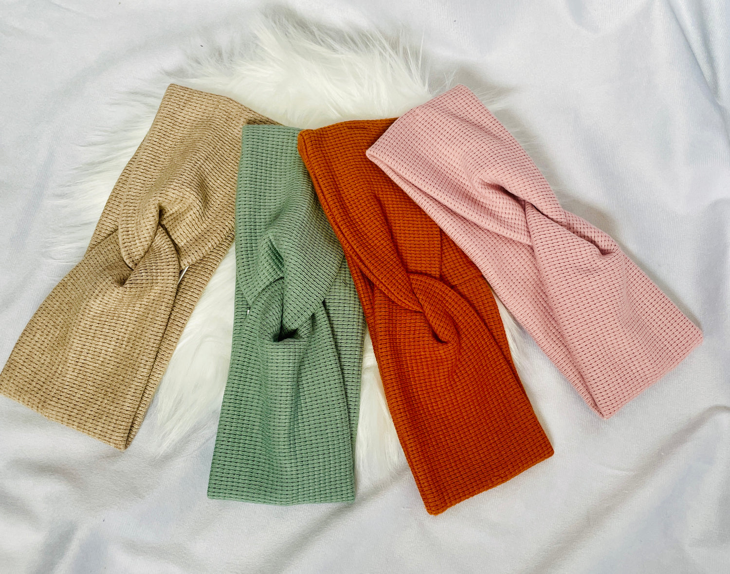 Stirnbänder aus Waffeljersey mit Twist oder gerade in verschiedenen Farben. Für Kinder und...