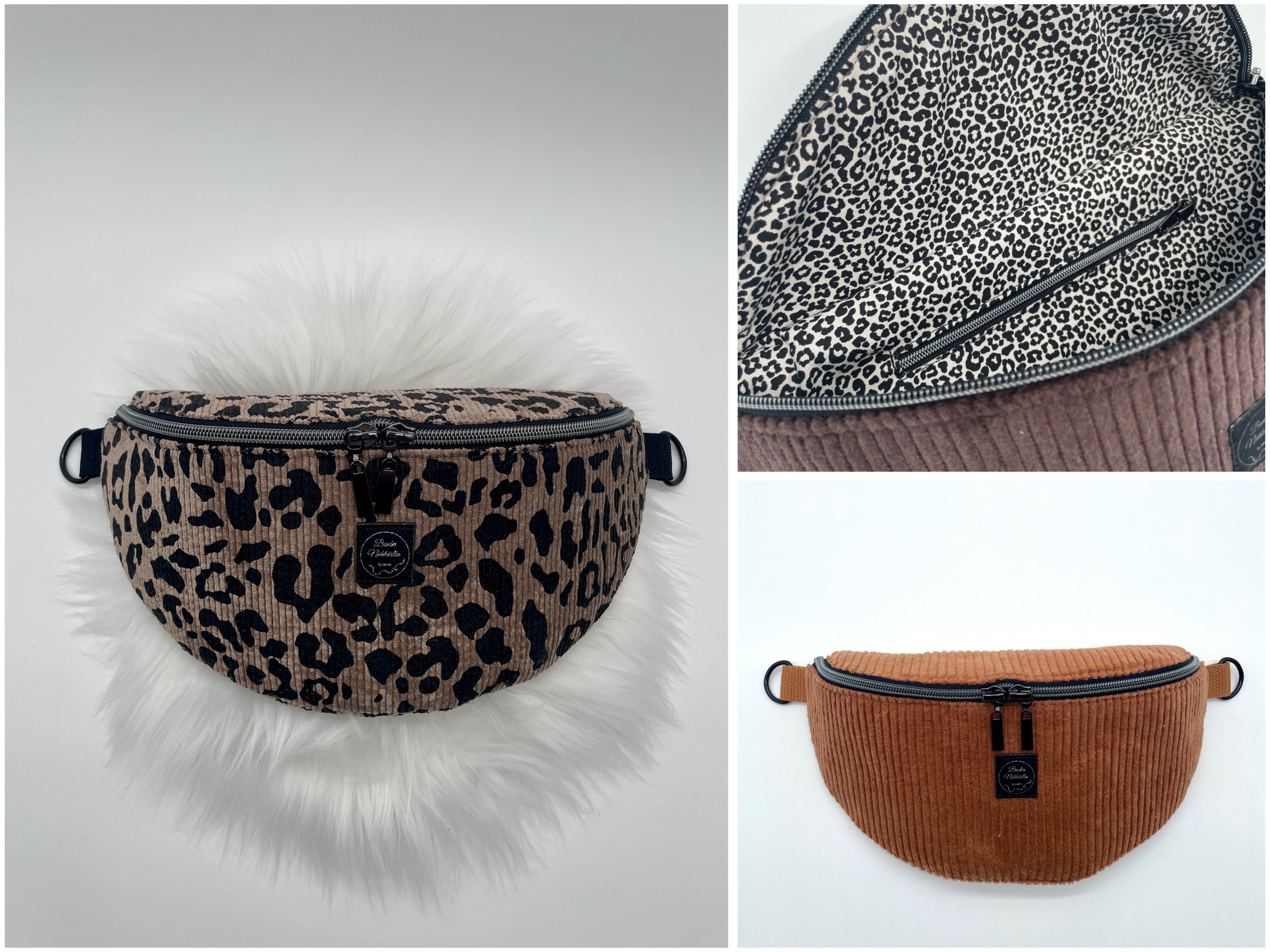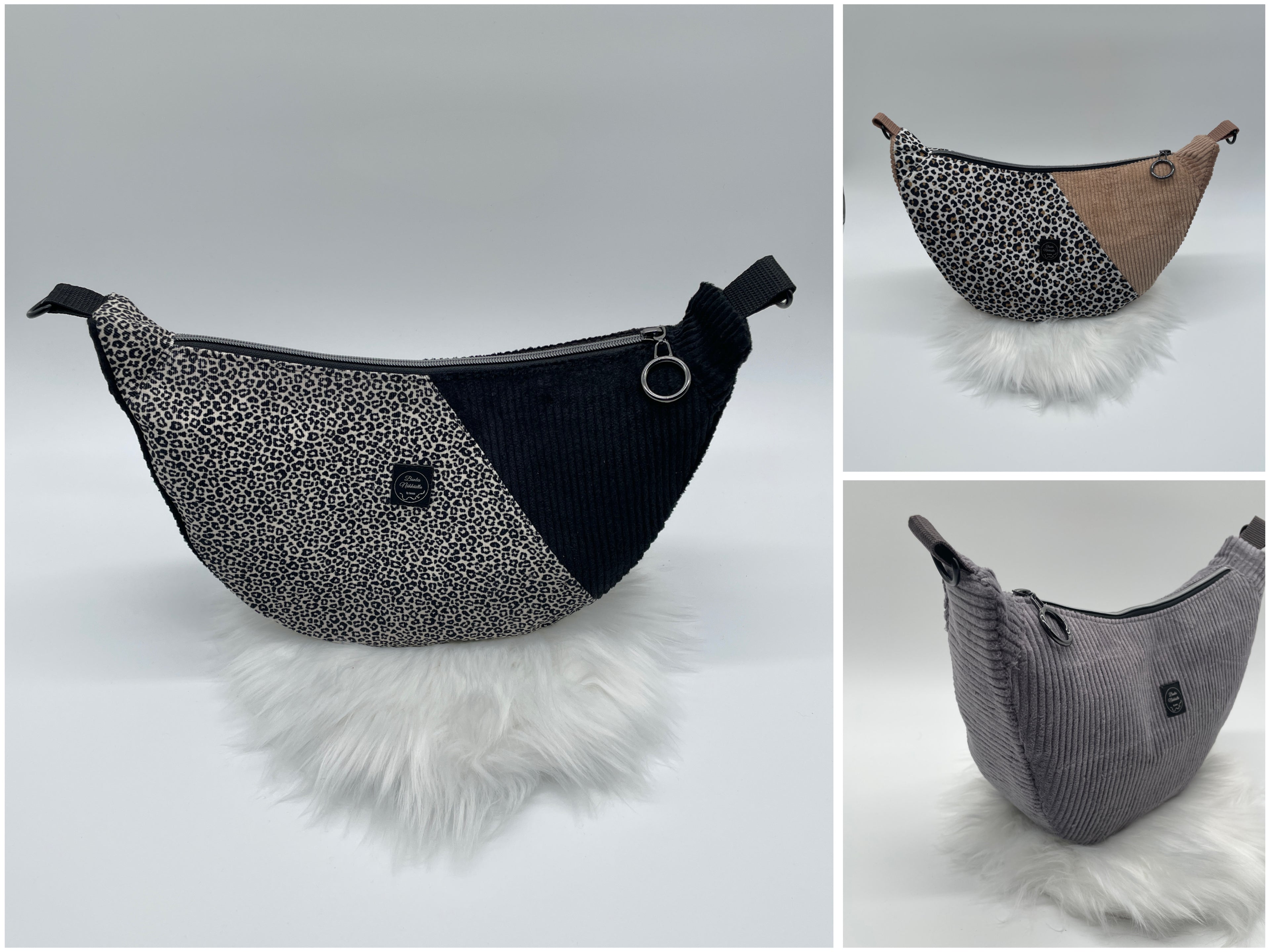 Schicke Halfmoon Bag's bieten viel Platz! Einfarbig oder mit Leo Motiv. Tragegurt nach Wahl, im Preis inklusive!