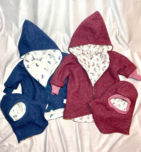 Mit viel Liebe genäht und ganz individuell! Stelle dir deine Lieblingsjacke zusammen. Egal ob mit Reißverschluss, Knöpfe, Farbe oder ob mit oder ohne Schlupfmütze... Du entscheidest wie die Jacke aussehen soll!