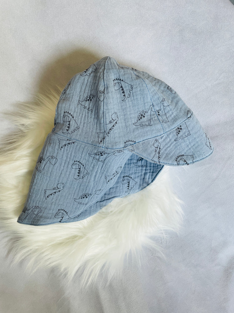 Leichte Sommermützen aus Musselin oder leichter Baumwolle mit Nackenschutz.