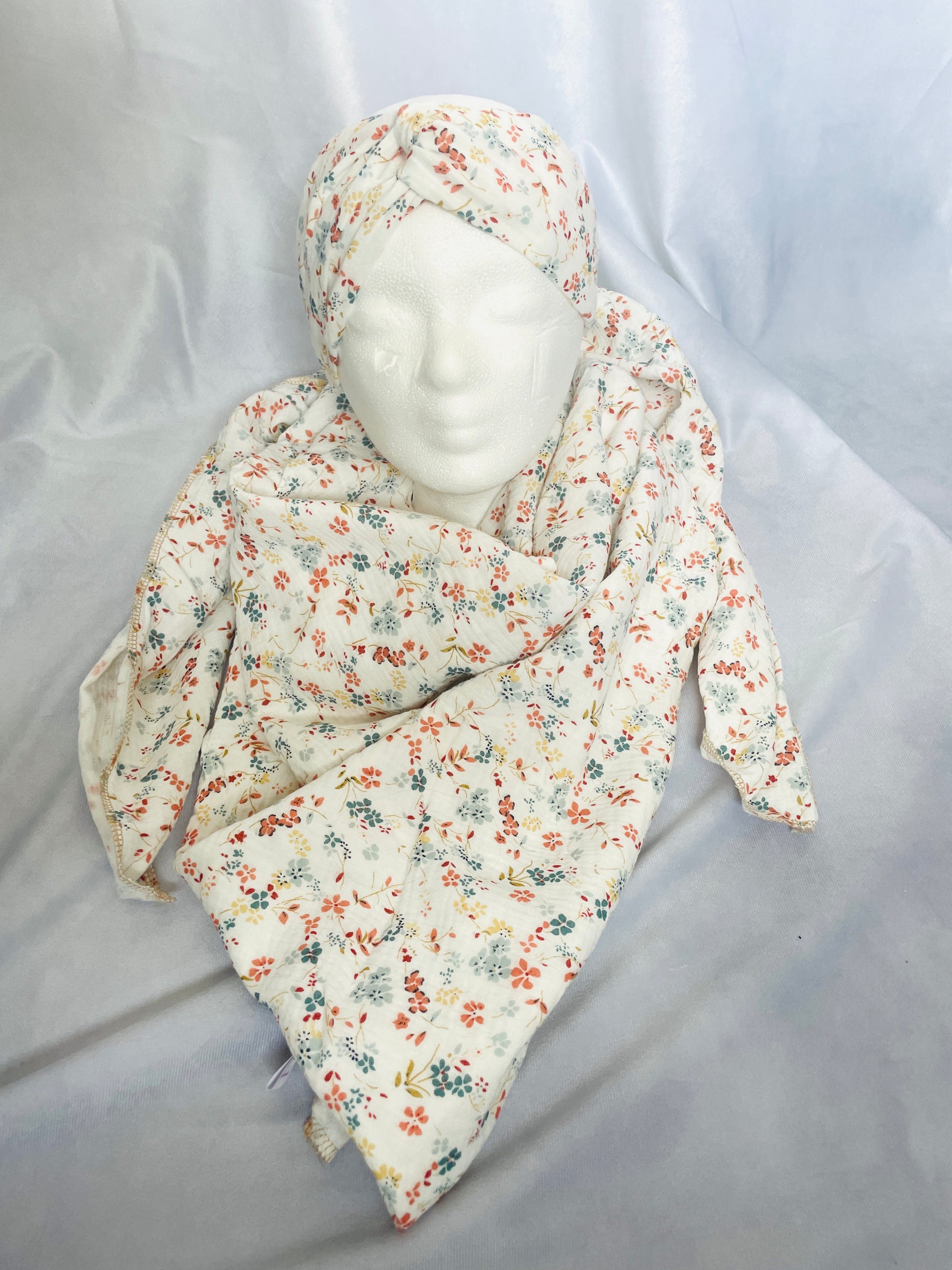 Haarband und Halstuch aus Musselin, 100% Baumwolle.