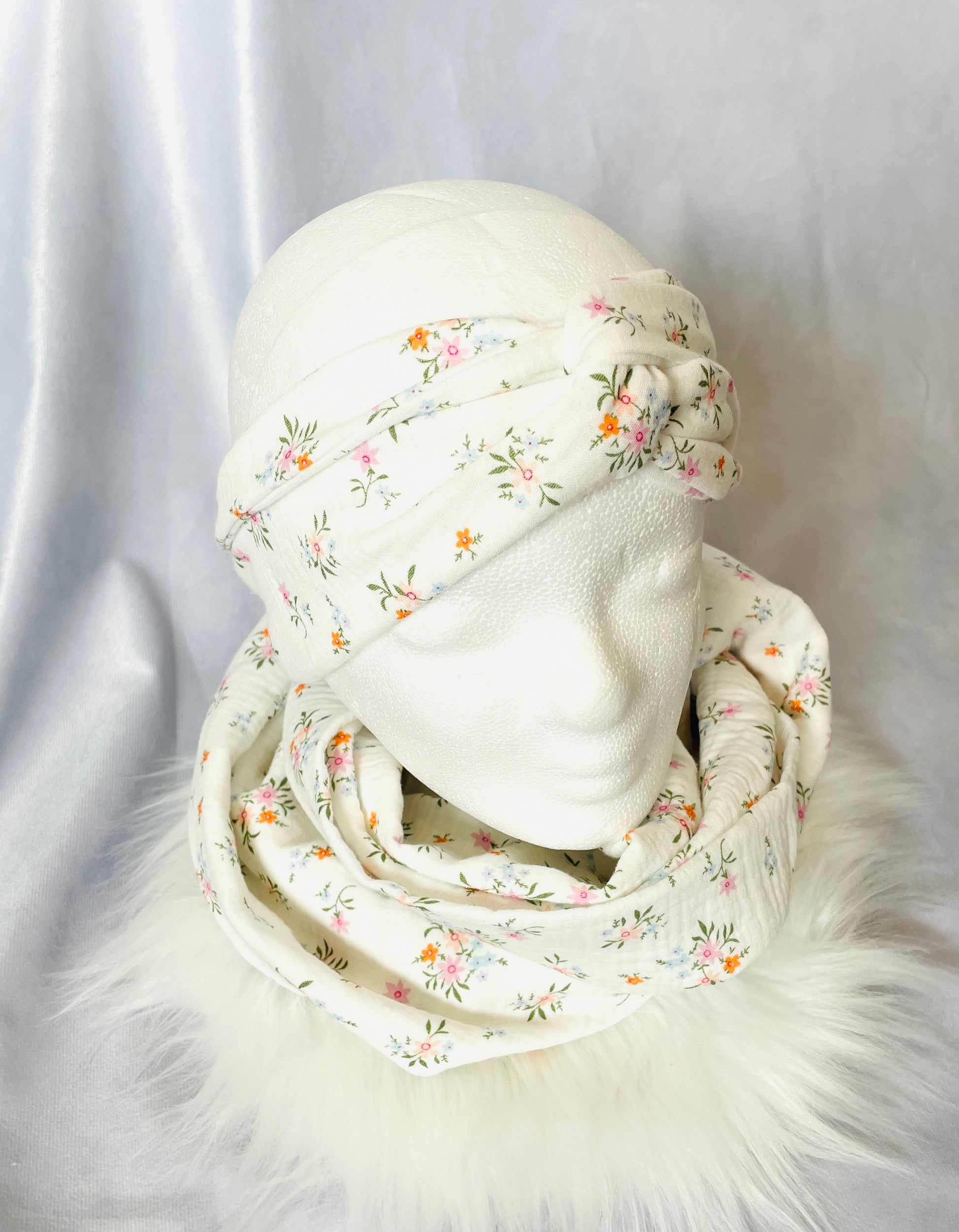 Loopschal und Haarband aus Musselin, 100% Baumwolle.